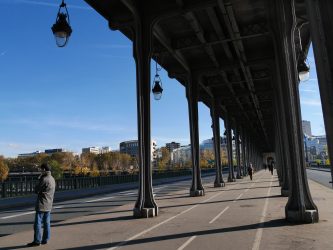 そこで下車し、階段を下って、セーヌ河の方に向かうと、ビル・アケム橋が見えてきます。ずらりと並ぶ橋桁はとても美しく、ファッション雑誌、映画、CMなどでよく目にします。