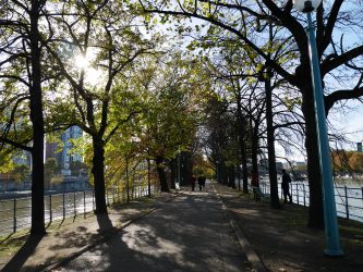 エッフェル塔とは反対側に目をやると、セーヌ河の中に小径があります。1827年に作られた「白鳥の小径(l’Allée des Cygnes)」です。