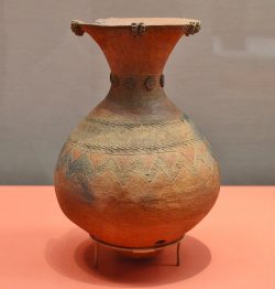 壺型の弥生土器。装飾性は控えめになり、実用性と装飾のバランスが取れている。そのために、左右の均整が取れ、穏やかな感じがする。