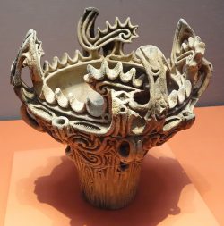 火焔型の縄文土器。実用的な目的を超えて、装飾それ自体が目的となっている。この土器は情念的な力強さを発散している。