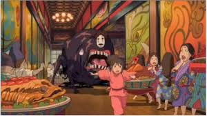 千が客だと思って建物の中に導き入れていたカオナシが千を慕い、彼女を探し回る中で、お湯屋で働いている人々に金の粒をばらまき、お祭り騒ぎになる。最後には、巨大化し、凶暴になり、人を呑み込んで、大暴れする。