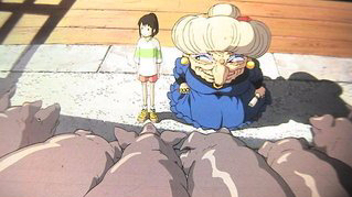 その後、湯女のリンが現れたとき、釜爺は千尋を自分の孫だと言い、二番目の援助者になってくれる。