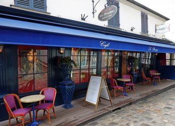 この角を曲がると行き止まりのように見えるが、実はセーヌ河に抜ける細い道がある。それがヌヴェール通り。