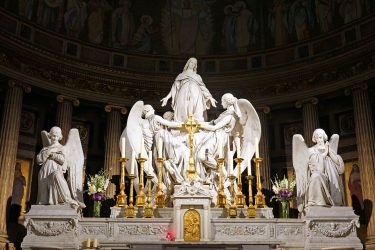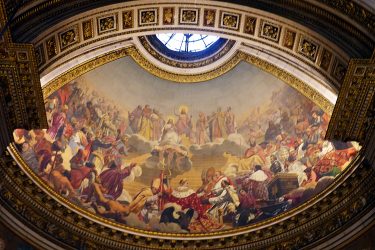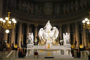 内部もコリント式の大円柱が建ち並び、球形のドームを支えている。そこに祭壇が作られ、素晴らしい彫刻が並ぶ。