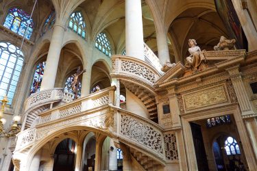 パリの守り神、聖ジュヌヴィエーヴ。その聖女の名前がついた聖ジュヌヴィエーヴの丘に、サン・テチエンヌ・デュ・モン教会は立っている。