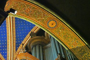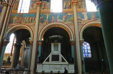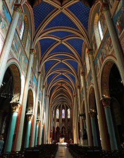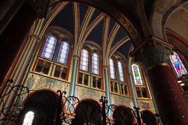 パリの中心地の一つ、サン・ジェルマン・デ・プレにある教会。創建は紀元6世紀に遡る。2016年から修復が始まり、内部の総称が鮮やかに甦っている。