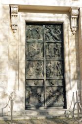 教会の脇にはメロヴィング朝時代の墓地があり、入口の扉の彫刻を見ることができる。