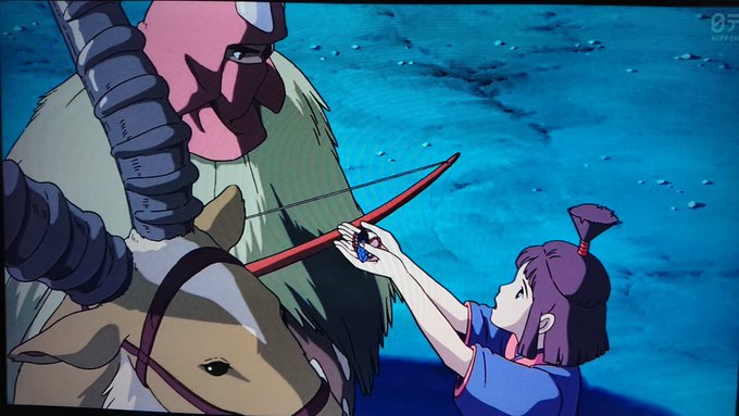 アシタカは村や少女達を守るために、タタリ神の怒りを押さえようとし、「静まりたまえ。」と懇願する。しかし、怒りを静めることは出来ず、弓をいって神殺しをせざるをえなくなる。