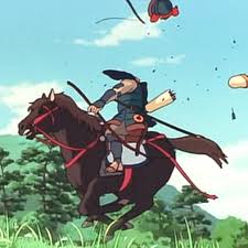 矢で射られたヤックルと自分を守るため、刀と弓で3人の武士たちの腕や首をふっとばす。