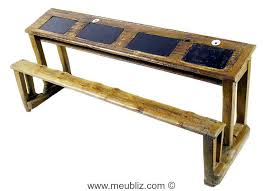 教室に置かれる机には、椅子と一緒になったもの(pupitre)もあったようだが、ベンチのような長い椅子(banc)だけの時もあったという。