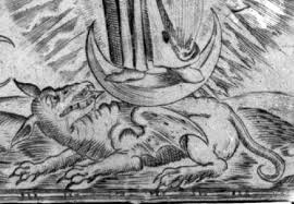 キリスト教の図象学の中で、足下に月を踏むマリアの像がある。この図の中で、月は悪の力の象徴であり、マリアは足でそれを踏み潰す、つまり悪を退治するという解釈がなされている。