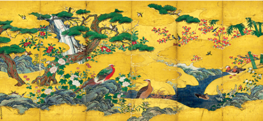 日本の絵画界の中で中心を占めることになる狩野派の一人、狩野元信には、豪華絢爛な「」もある。