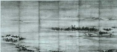 また、やまと絵との融合が始まり、例えば、能阿弥の「三保松原図」は、伝統的な名所絵を墨で描いたものと見ることもできる。