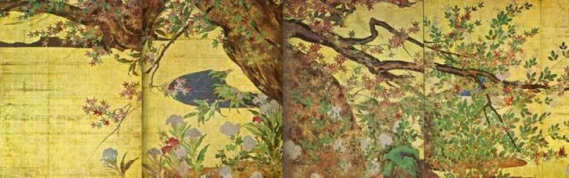 その一方で、墨絵に彩色を施す試みも始まったことは、狩野元信の「四季花鳥図」等によっても示される。