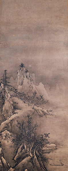 馬遠の一角、夏珪の一辺と言われ、画布に余白を残し、その余白に余情を感じさせる画風を確立した。水墨画独自の美である。