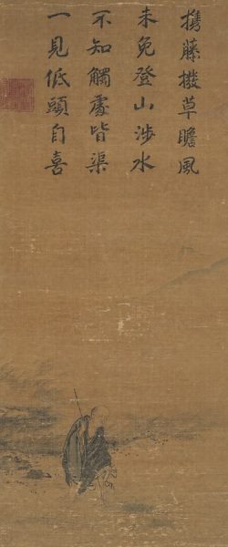 この水墨画から、絵の主題が書斎から、山や岩、松など自然の景色に移行したことを見てとることができる。