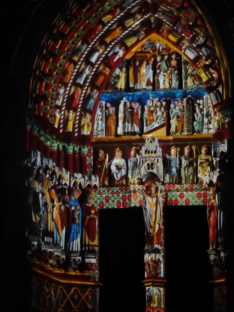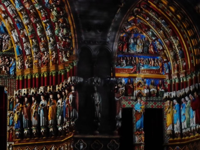この色づけは恣意的ではなく、壁や彫像に残るほんのわずかな絵具を科学的に分析し、大聖堂が建造された当時の色を忠実に再現しているという。
