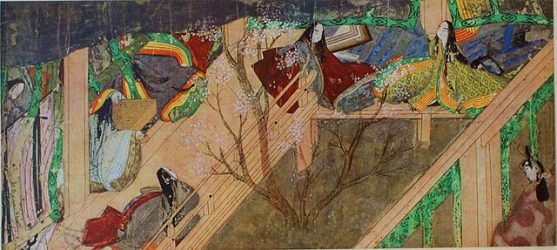 源氏物語絵巻では、墨で描いた下絵の上に濃い色を塗り、さらに濃い墨で輪郭線を描く手法(作り絵)が使われ、鮮やかな色彩を生みだしている。
