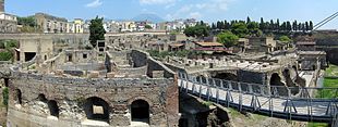 Herculanum:ヘルクラネウム。イタリアの古代都市。ポンペイと同じように、79年のヴェスヴィオス火山の噴火のため、火山灰に埋まった。
