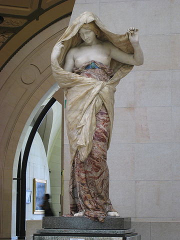 その理想の前で、本来であれば、女性はためらうことなく、ヴェールを持ち上げ(se dévoiler)、素顔を見せる。古代の女神の像のように。