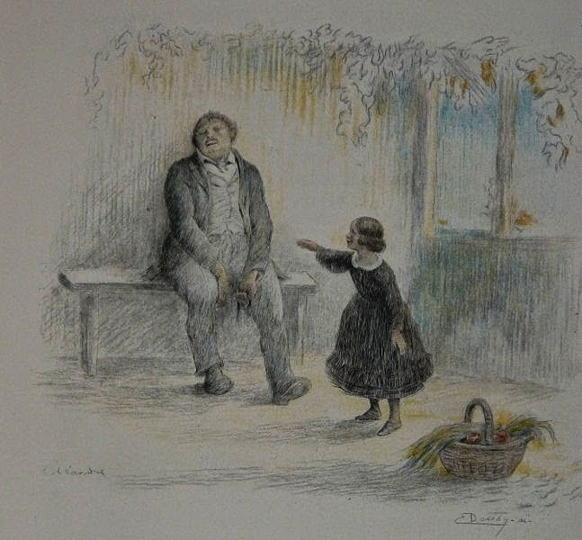 7時になり、午後の間ずっと彼を見なかった幼い娘ベルトが、夕食に彼を呼びに来た。