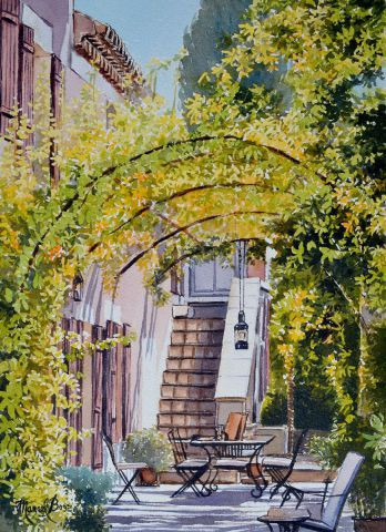 ロドルフと会った翌日、シャルルは庭のブドウ棚に行き、ベンチに座る。
