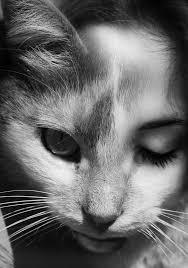 猫を胸に抱き、瞳をじっと見つめていたいと、猫に語り掛ける。