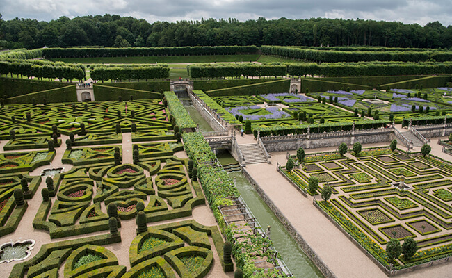 ヴィランドリー城の完璧といっていいほど整えられた庭と、その後ろに広がる森の光景は、人口と自然の断絶をはっきりと示している。