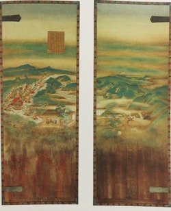 他方、風景を見ると、切り立ち峻厳な自然ではなく、神秘性を感じさせない穏やかな自然の姿が描かれている。その方面では、日本化が進んでいる。
