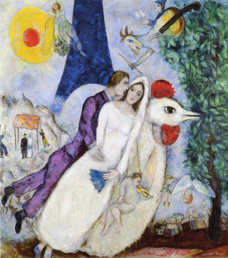 マルク・シャガールの「エッフェル塔の新郎新婦」。