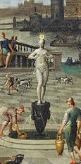 この像の台座や乳房から流れ出る水は、「生命の泉」を起源とし、異教の神が司る豊穣のシンボル。