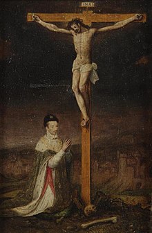 この絵画の中で、十字架の前で跪くアンリ3世とキリストの位置は上下関係にあり、伝統的な宗教画の構図の中にフランス王が収められている。