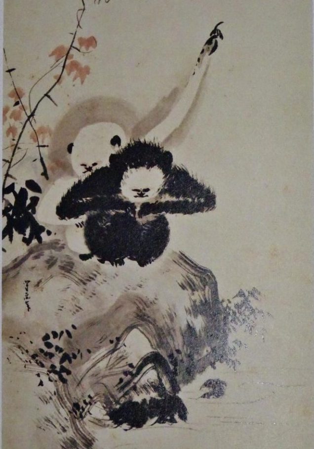 猿が木の上から手を伸ばし、水に映る月影を取ろうとする伝統的な画題を描いた「猿猴捉月図」。