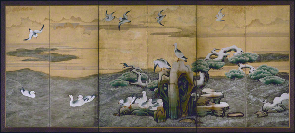 大和絵の伝統的な主題である海岸を描いた絵画においても、グラフィック・アート的なデザイン性が強く表現される。