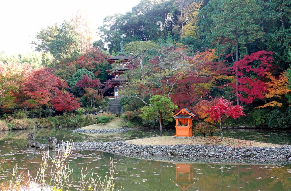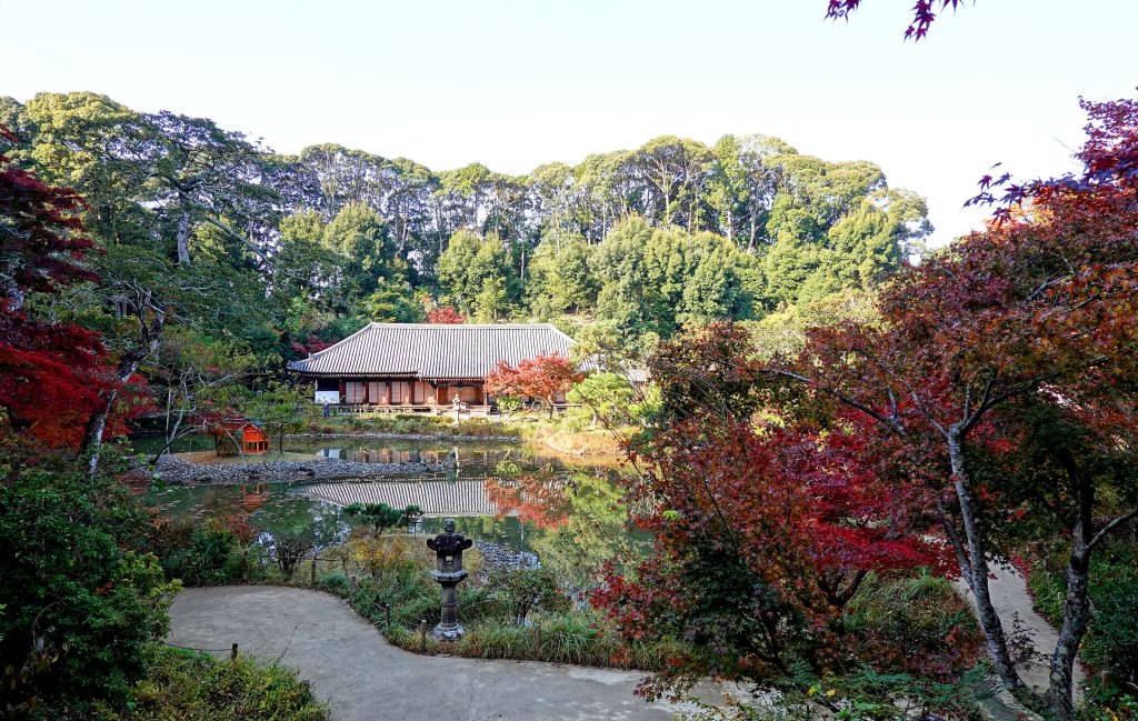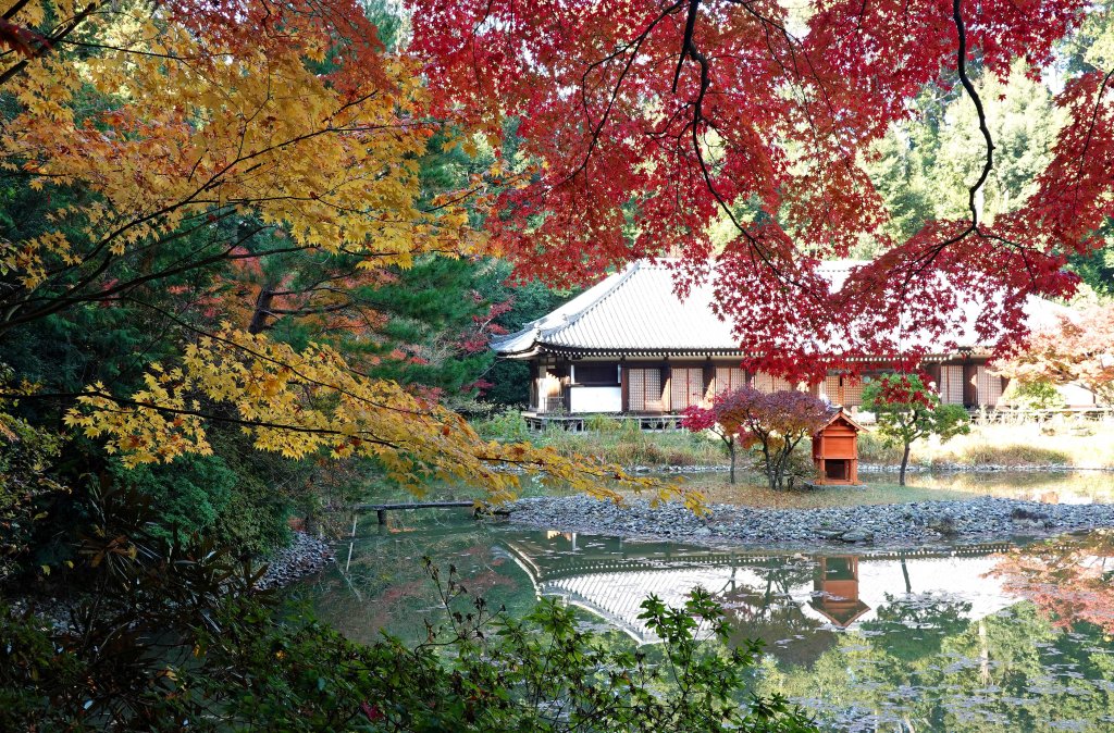 京都の南の端、奈良との境に位置する浄瑠璃寺には浄土式庭園があり、秋にはとりわけ美しい姿を見せる。