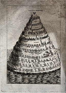 ダンテの描く煉獄は、地獄とは反対に、上に頂点がある円錐形をしていて、上に行くに従い、円錐を形成する輪は小さくなっていく。