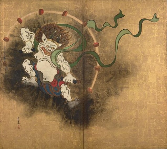 尾形光琳の雷神と比べると、一蝶における俳諧の精神をより明確に感じ取ることができる。