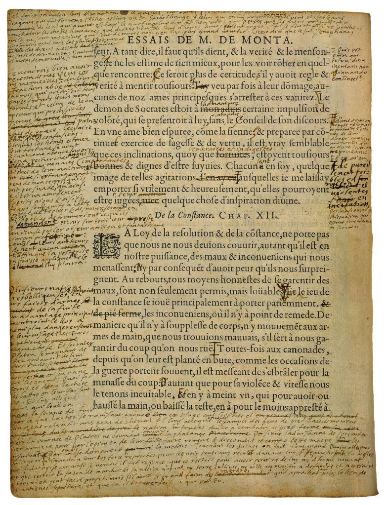 常に変化することを意識しているモンテーニュは、晩年まで自書への書き込みを行い、1592年の死の時まで継続する。