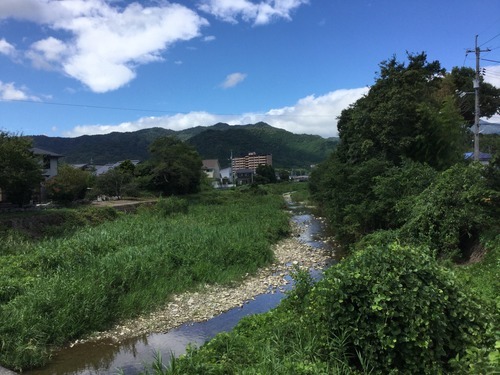 古敷川は「水無川」とも呼ばれていた。実際、中也の弟・中原思朗によると、「毎年、7月ごろから翌年4月ごろまで、古敷大橋付近を中心に、前後五百メートルくらい流水をみない。(中略)水のない乾いた河床には、小石や砂礫があらわに見え」たという。