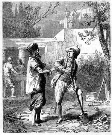 カンディッドは小作地に戻る途中、トルコ人の話について深く考えた。そして、パングロスとマルタンにこう言った。「あの善良な老人は、私たちが光栄にも一緒に夕食をした6人の王たちの運命より好ましい運命を、自ら作り出したように私には思えます。」「偉大なことが非常に危険だとは、全ての哲学者たちが伝えるところだ。」とパングロス。「というのも、モアブ国の王エグロンは、結局、アオドによって暗殺された。(中略:以下、同様の例が多数挙げられる。)」「私にもわかっていることがあります。」とカンディッド。「私たちの庭を耕さなければならないのです。」「お前の言うことは正しい。」とパングロス。「というのも、人間がエデンの園に置かれた時、『創世記』が言う通り、人間は働くためにそこに置かれたからだ。そのことが証明するのは、人間は休息のために生まれたのではないということだ。」「屁理屈を言わず、働こう。」とマルタン。「それが人生を耐えられるものにする、唯一の方法なのだ。」