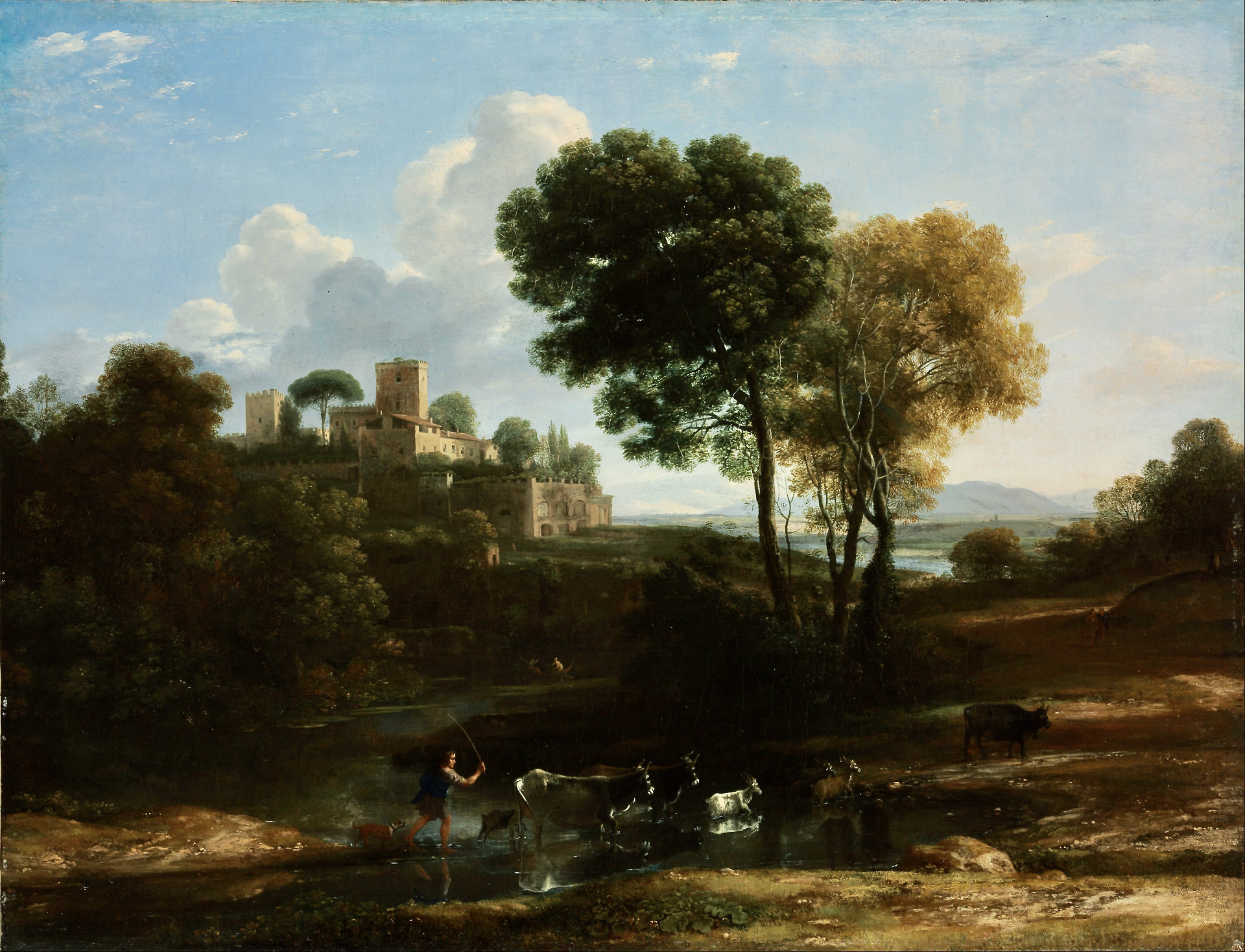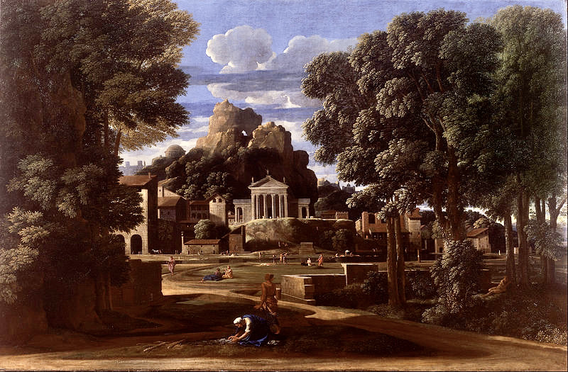 こうした構図の整った風景は、クロードと同時代にローマで活動を続けたニコラ・プッサン(1594‐1665)の風景画と共通性がある。