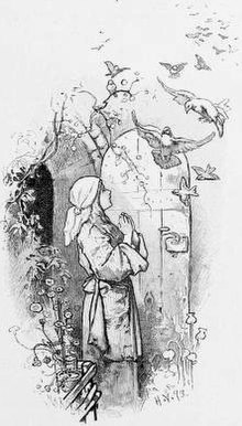 このように、いばら姫の誕生は超自然な雰囲気の中で行われる。ペローと比べると、その差は一目瞭然である。