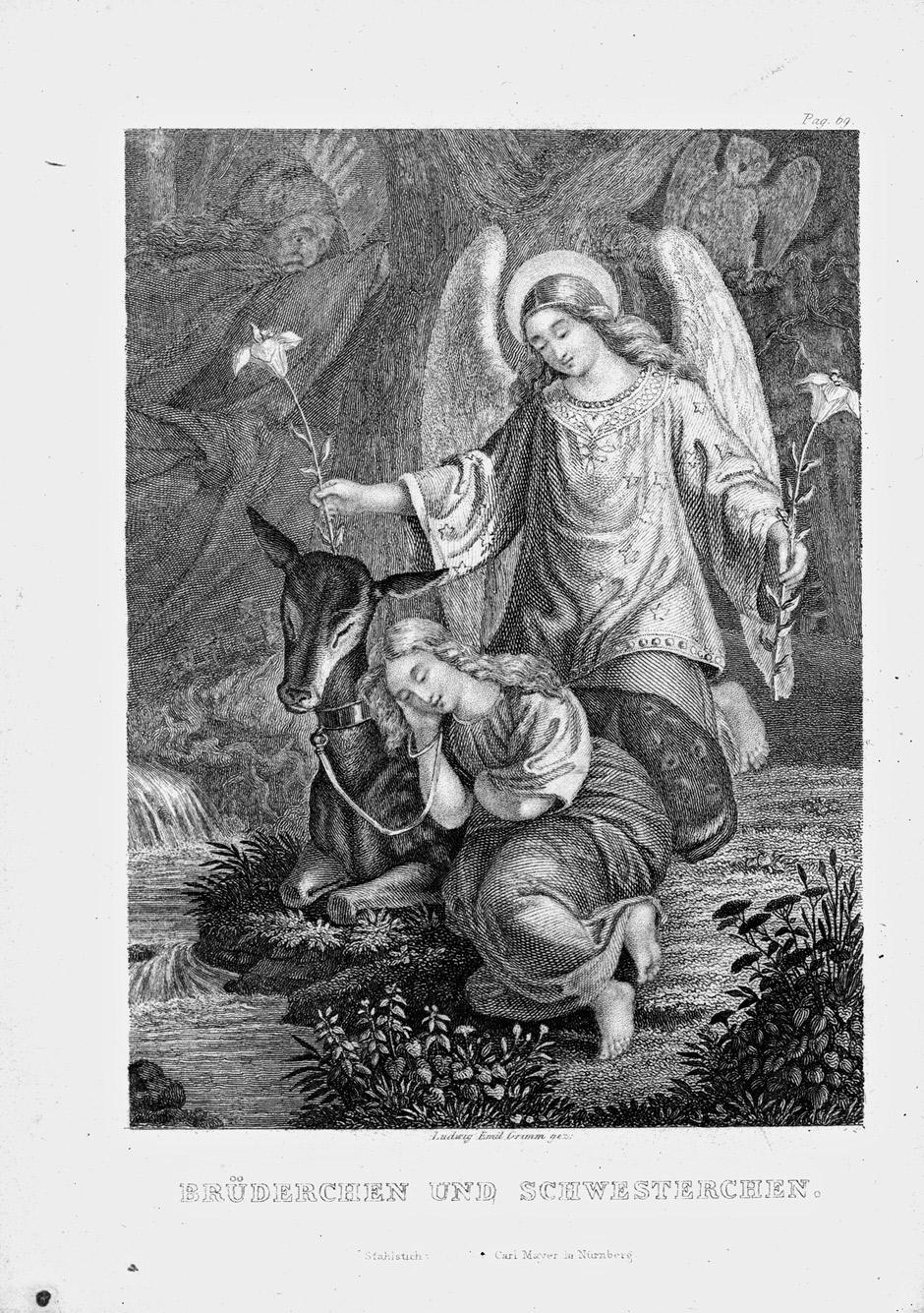 最初に印刷本として出版されたこの版では、昔話を開始する常套句が付け加えられ、語られる物語が昔話であることがわかるように加工されている。
