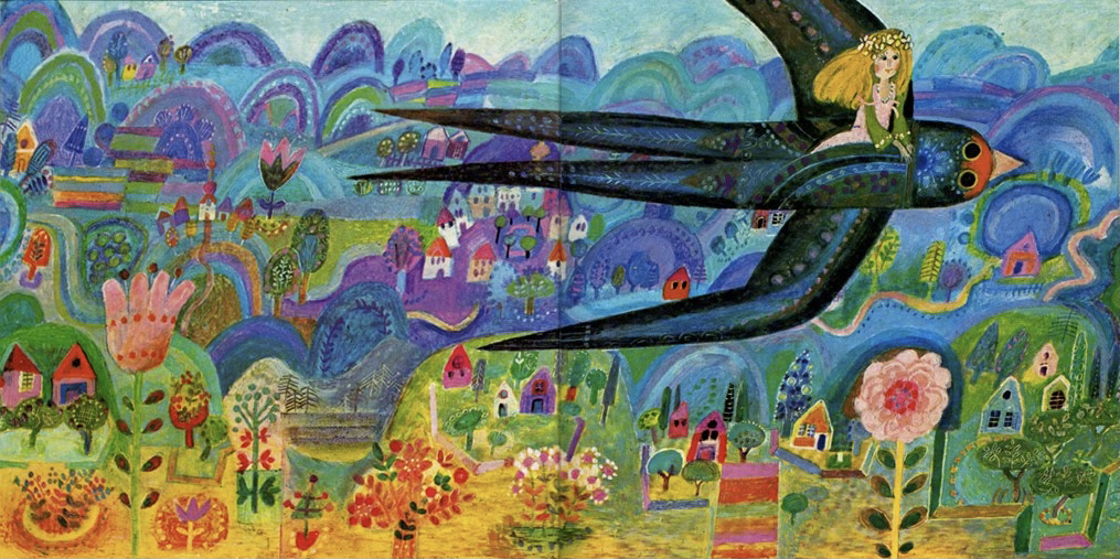 「おやゆび姫」の結末近く、ツバメが姫を南の国に連れて行ってくれる。空を低空で飛びながら見たと思われる草原は、生命の力にあふれている。