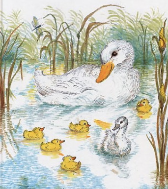 同じように、アヒルの子も、自分の家族だけではなく、ニワトリや七面鳥、野がも、猟師、犬、お百姓のおばあさん、ネコ等、色々なものからいじめられ、悲しい思いをする。しかし、その苦しみが大きいだけに、最後の幸せも大きく感じられる。