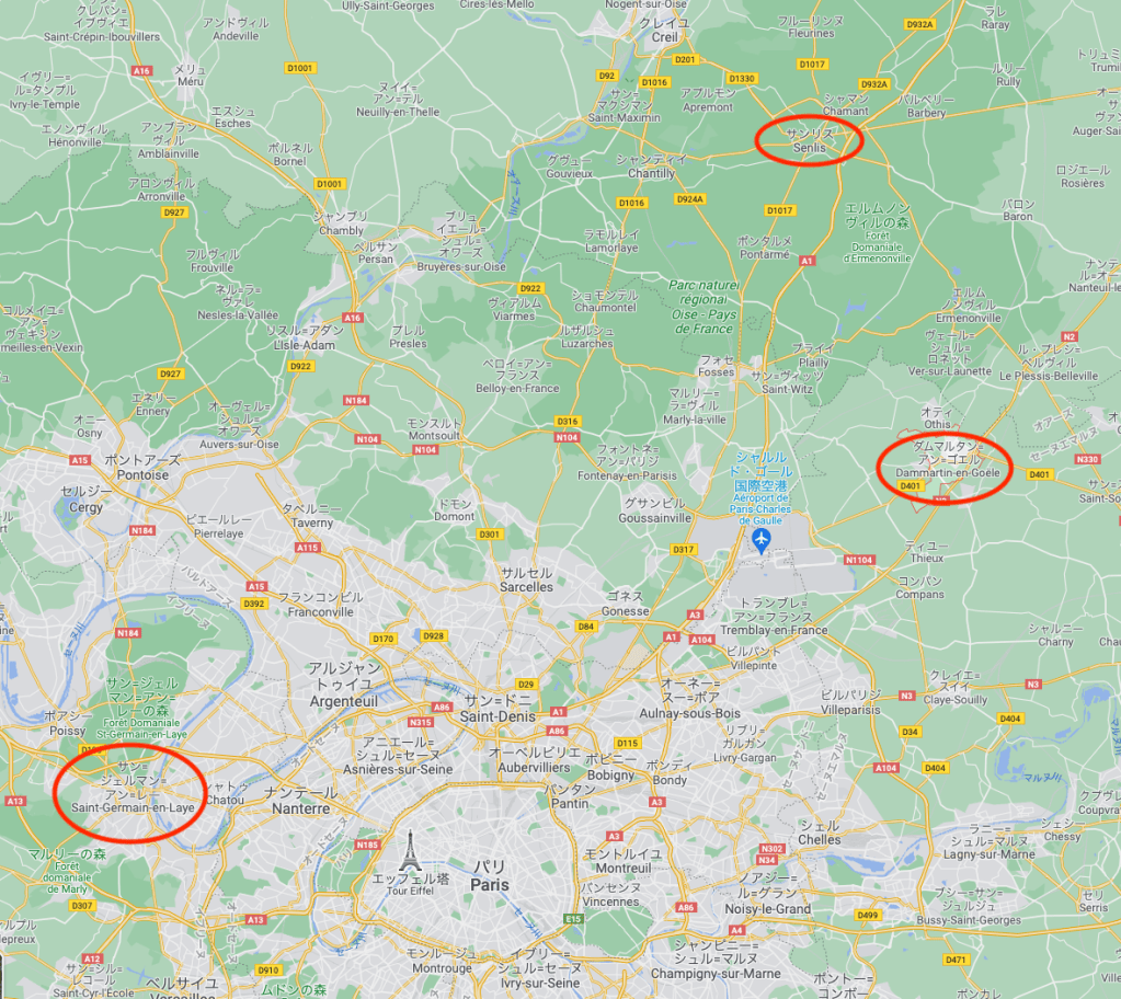 外に出ると美しい月の光。私は1827年に生きているように思った。その頃、少しの間、サン・ジェルマンに住んでいた。そこの小さな祭りに参加していた少女たちの中で、私は、強い眼差しや、規則正しく、こう言ってよければ古典的な顔立ち、そして、その地方特有のイントネーションに気づいていた。それらのおかげで、私は従姉妹やその時期に友だちだった女の子たちを夢心地で思い出し、別の世界で最初の頃の恋愛を再発見したような感じがした。月の光の下で、眠っている通りや散歩道を歩き回った。城の堂々とした姿に感嘆し、ほとんど葉が落ちた木々の香りを嗅ぎに、森の端まで行った。この時刻の方が、教会の建物をよりよく味わうことができる。教会にはジャック2世の妃が眠り、ローマの神殿のように見える。(原注:今では内部はビザンチン様式で修復され、数年前から、素晴らしいフレスコ画が発見され始めている。)