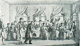 衛兵室を再び通りかかった時、少佐には、御丁寧にありがとうございました、と言うだけにした。守衛長は「心付け」を受け取ろうとしなかった。イギリス人に募金を提案するという考えが、私の頭の中を去来し、町に住む人たちにそれがどのように受け止められるのか試してみる、という考えに満足していた。そこで、アンリ4世館に夕食に行った。そこからは、フランスで最も美しい眺めを楽しむことができる。その中にある東屋の前には、40キロにもなるパノラマが広がっているのだ。募金について、3人のイギリス人男性と一人のイギリス人女性に話してみると、みんなとても喜び、その計画はイギリスの国家意識にぴったりだと見なした。——— サン・ジェルマンには特別なことがある。みんな知り合いで、公共の建物の中でも大きな声で話をし、紹介されなくても、イギリス人の女性と話すことができる。そうでなかったら、退屈してしまうだろう! 住民の構成も特別で、社会状況に応じて分けられているけれど、完全にその土地に根付いている。サン・ジェルマンの人はめったにパリに来ない。10年に一度さえその旅をしない人もいる。外国人の家族も同様で、家族同士で親しく交流して生活している。その親しさは、水の町に存在するもの。人がサン・ジェルマンに求めるのは、水ではなく、純粋な空気だ。魅力的な精神病院がいくつかある。そこに住むのは、とても健康だけれど、都会での気の狂ったような喧噪や動きに疲れた人々。駐屯地にいるのは、以前は護衛部隊だったが、今は機甲連隊。美しい若い娘や寡婦たちがいるのも、それと無関係ではないだろう。ロージュやヴァル城に行く道で、馬やロバに乗っている彼女たちの姿を見掛けることがある。——— 夕方になると、パリ通りやパン通りのブティックが灯りを灯し始める。最初は扉の近くでペチャクチャ話し、ケラケラ笑い、歌を歌うこともある。——— 声の調子がパリとははっきりと違っている。若い娘達は、山岳地帯のように、ピュアーで、とてもよく響く声をしている。教会の道を通りかかった時、カフェの奥の方で歌う声が聞こえてきた。そこに沢山の人たちが入って行くのが見えたが、特に女性が多かった。店の中にずんずん入って行くと、大きな部屋になった。色々な旗や花飾りで一面が飾り付けられ、秘密結社フリーメーソンを示す飾りと、よく使われるモットーが張り出されていた。——— 私は以前、「喜びの人々」と「シラクサの牧人」という歌声結社に属していたことがある。そのために、問題なくそこに入ることができた。
