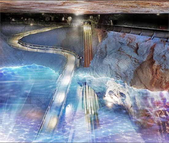 葉の落ちた木の枝を、塩を採集していた坑道の奥深くに投げ込む。しばらくして引き出してみると、枯れ枝にキラキラと輝く結晶が付いている。