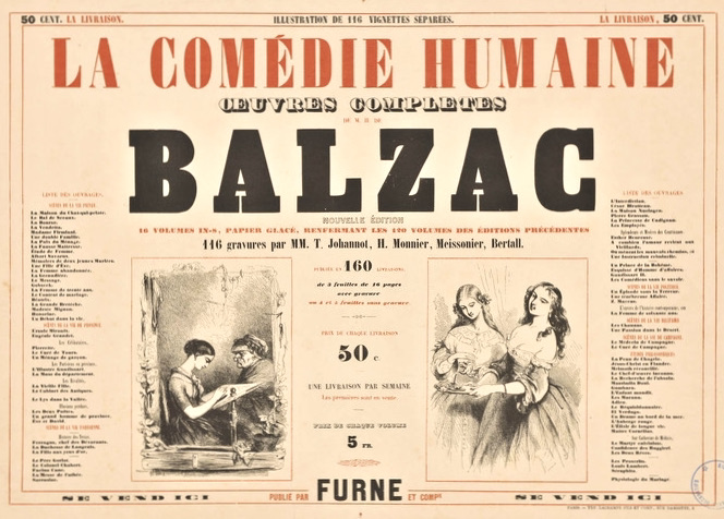 90巻以上の小説で構成される「人間喜劇」シリーズでは、「戸籍簿と競争する」という言葉で示されるように、ナポレオン失脚後のフランス社会全体を体系化して描き出そうとした。