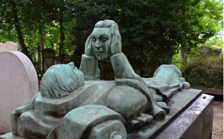 「墓石の形が死者たちに与える姿勢(l’attitude que la mort donne aux morts)」というのは、墓石の上に死者の像が置かれている様子を思い浮かべると理解できるだろう。